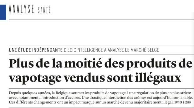 Un article de Trends-Tendances basé sur une nouvelle analyse d'ECigIntelligence met en évidence un danger croissant pour le marché belge de l'e-cigarette : plus de 50% des vapes et e-liquides vendus le sont en dehors du réseau légal.